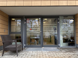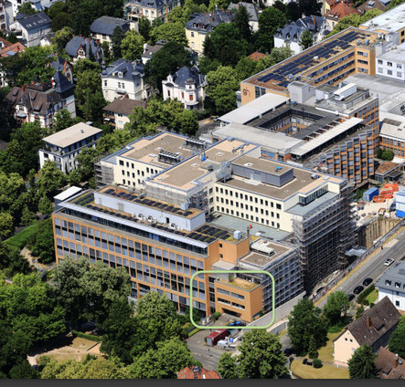 Eigener Seiteneingang rechts oberhalb der Haupteingänge zu medicum und JoHo